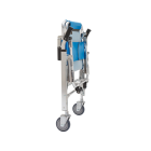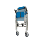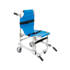 Aluminum alloy ambulance chair with PVC seat, safety belts, and braked wheels lightweight, foldable, and ideal for safe patient transport in emergencies.