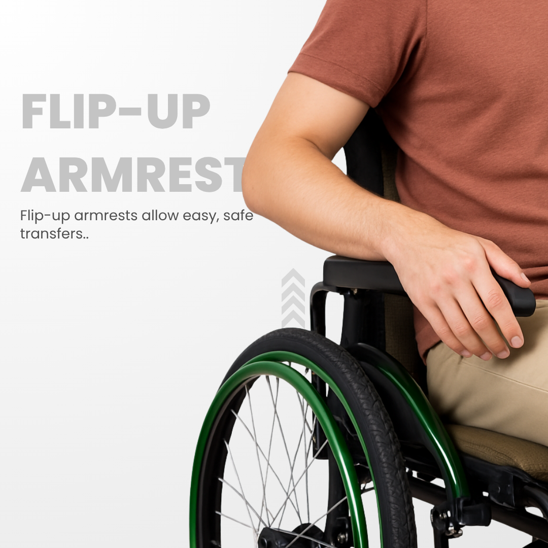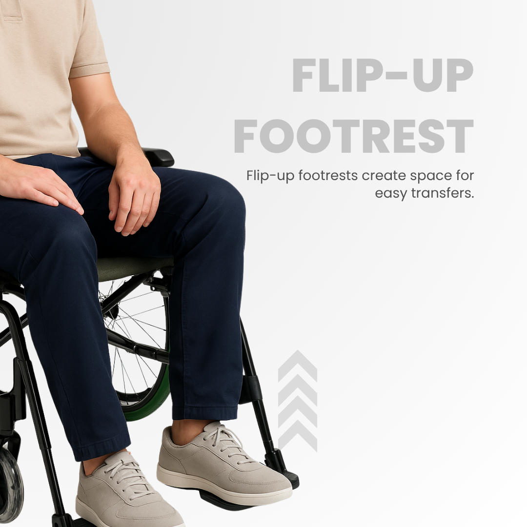 • Flip up armrest & footrest