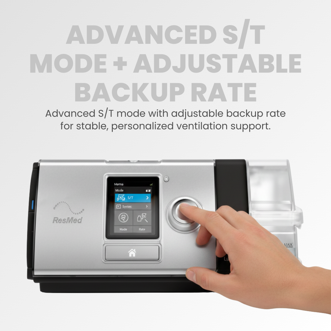 - Provides advanced S/T mode with an adjustable backup rate for consistent, non-invasive ventilation.