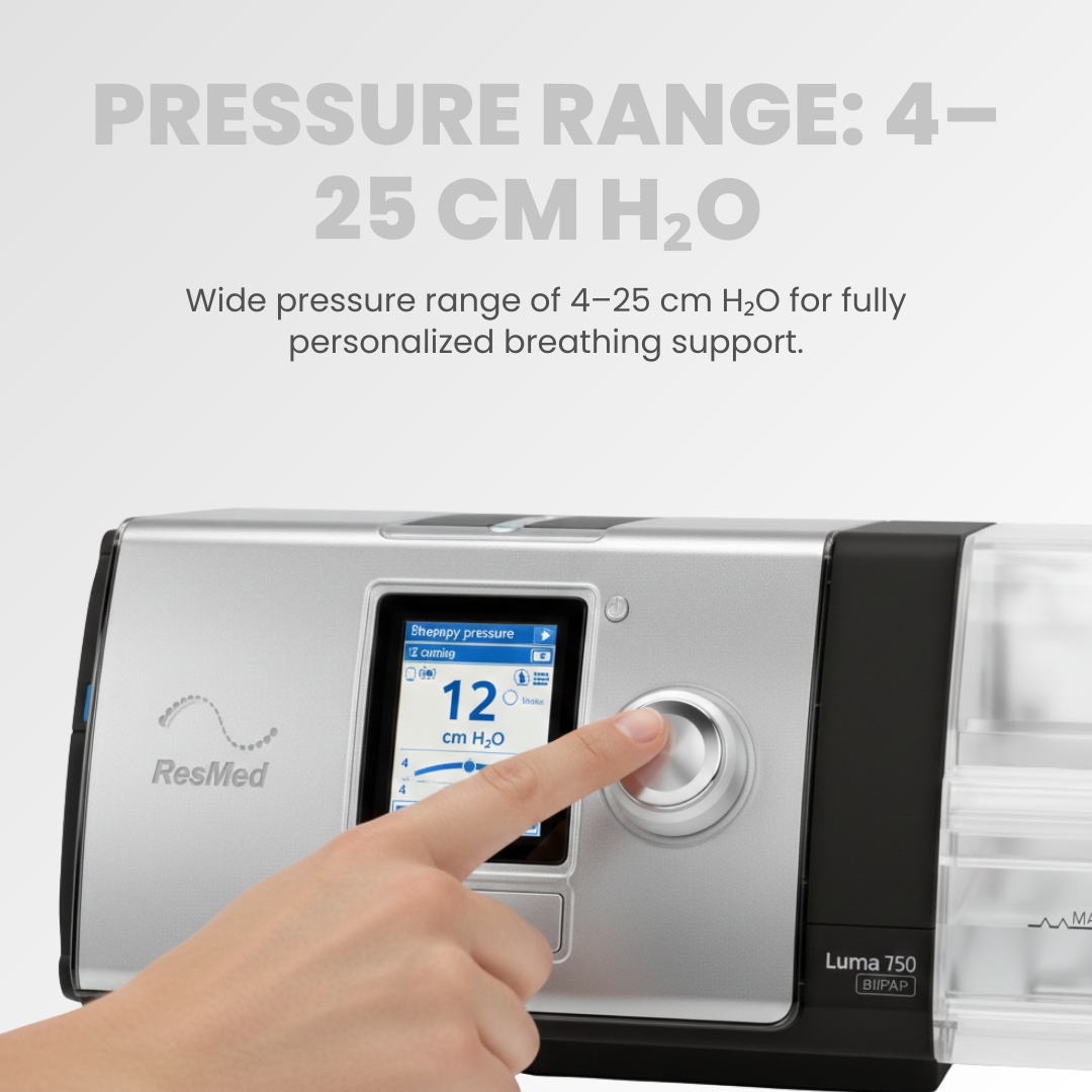 - Offers a 4–25 cm H₂O pressure range for customized support across various complex respiratory conditions.