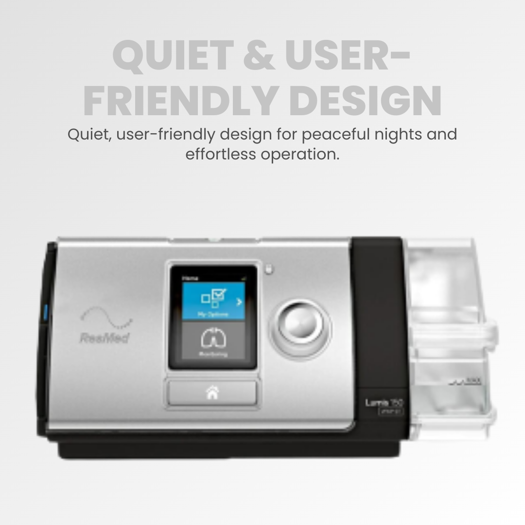 The ResMed Lumis 150 VPAP ST delivers reliable non-invasive ventilation with advanced S/T mode and an adjustable backup rate. Its wide 4–25 cm H₂O pressure range supports complex respiratory needs, while the quiet motor, full-color LCD, and intuitive controls ensure a smooth and user-friendly home therapy experience.