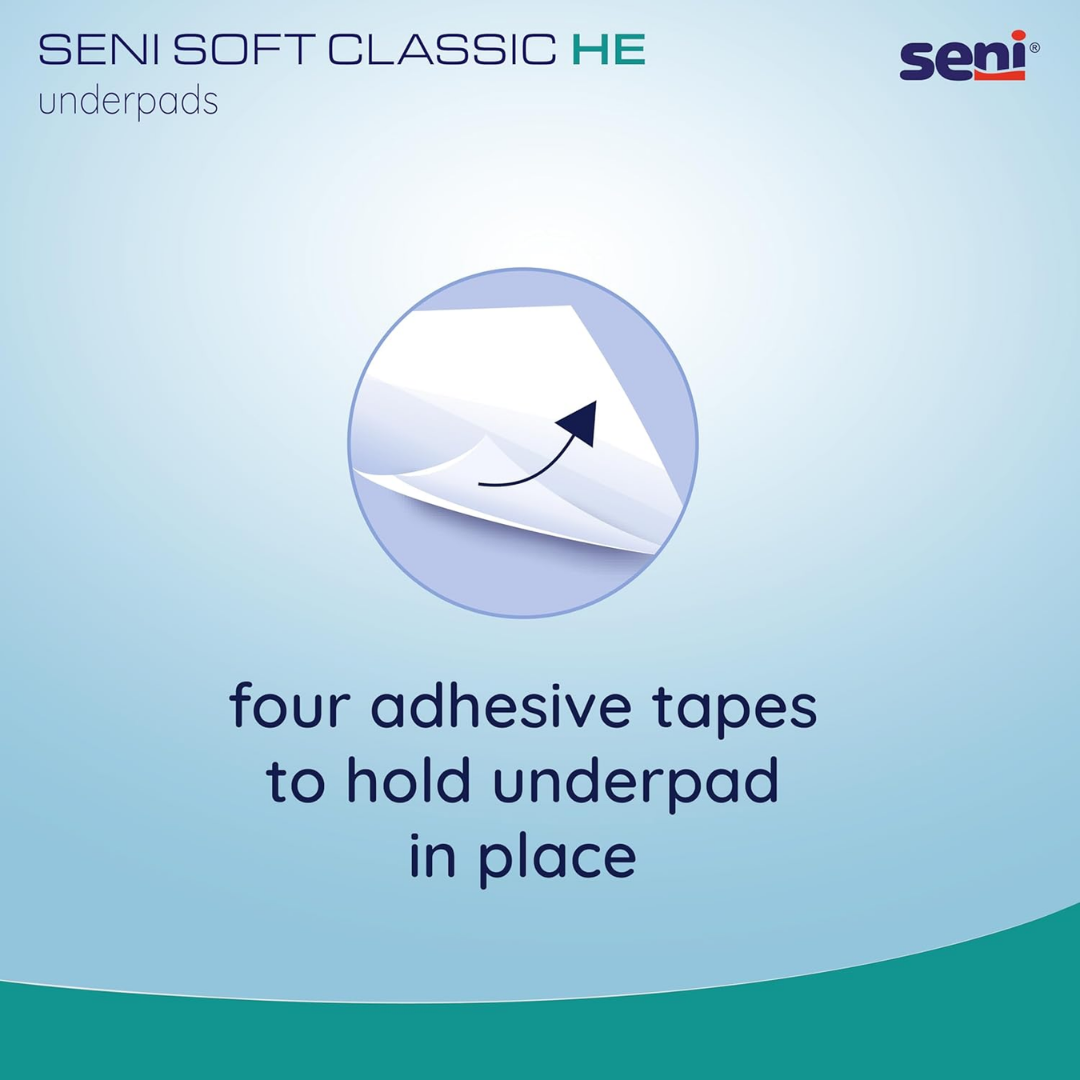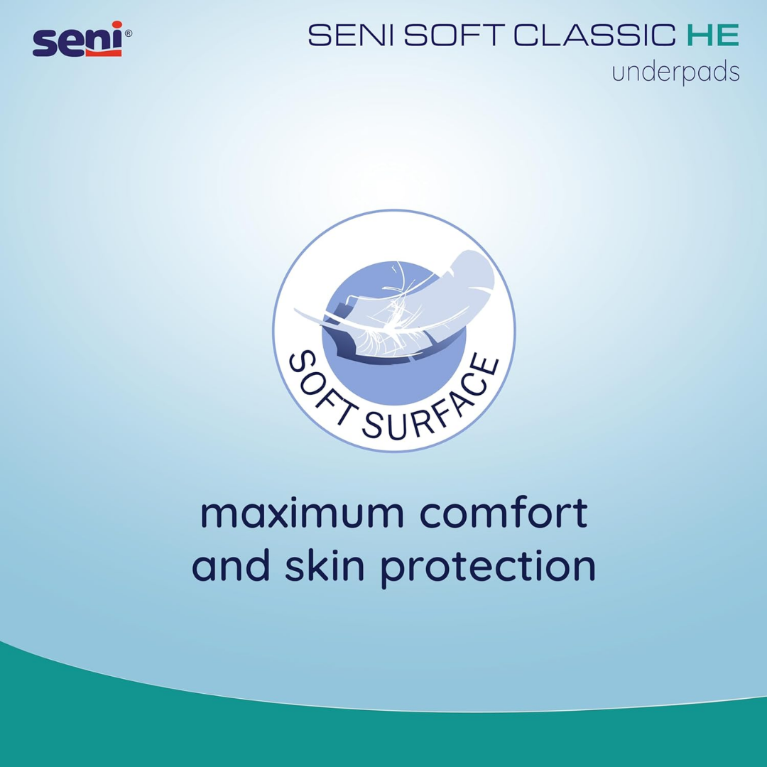• Seni underpads are ideal protection of any surface, can be used on bed, wheelchair, during diaper changing or body washing