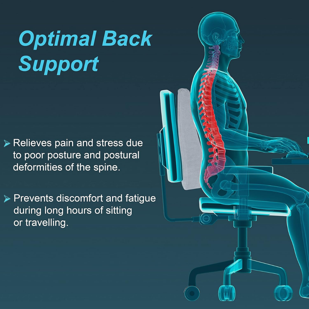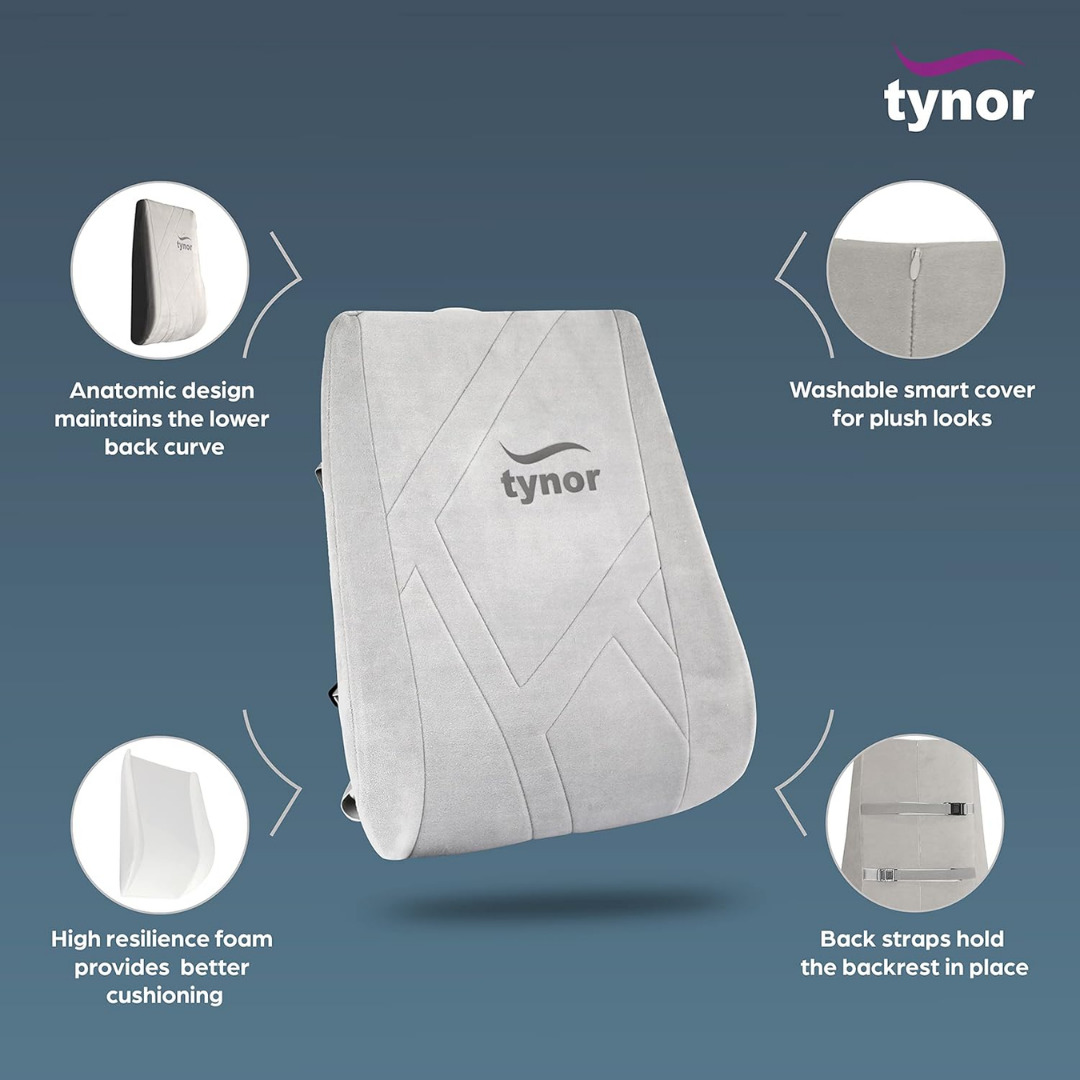 Tynor Chair Back Rest Full provides lightweight, portable support that keeps the spine in a neutral posture. It’s not worn but is placed on chairs, car seats, beds, or even the floor and made of high-density polyurethane foam lined with a soft fabric. The design aligns with a human’s back shape and maintains the spine’s natural curve.